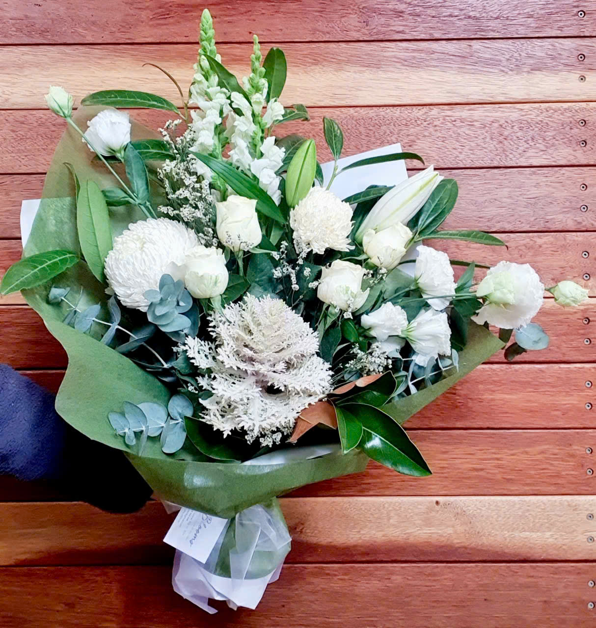 Handcrafted by our expert florists in Coronet Bay, Victoria, this bouquet is available for same-day delivery across Wonthaggi, Phillip Island, Inverloch, Cowes, Lang Lang, Grantville, and the Bass Coast region. Whether you are looking for sympathy flowers, a wedding bouquet, or a thoughtful gift, the Pure White Elegance Bouquet delivers serenity and sophistication in every stem.